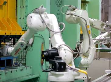 在工程機械行業(yè),隆深機器人在電弧跟蹤、 尋位、多層多道焊接方面有了深入研究,實 現(xiàn)了對泵車支腿、塔機主弦梁自動化焊接、 多臺機器人協(xié)作焊接。